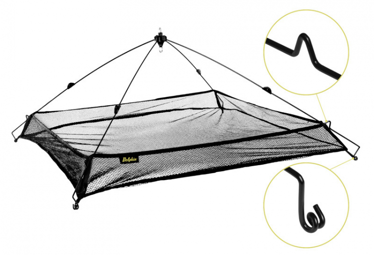 Čereň od značky Delphin má viacero neprekonateľných výhod. Prvou je výborná skladnosť a transportná veľkosť, ďalšou je použitie PE sieťky. Tento model navyše poskytuje vyvýšené kraje- bočnice a to až do výšky 10cm. To umožňuje výrazne eliminovať únikové šance nástrahových rybičiek. Kovové ramená sú výklopné, čo zaisťuje naozaj rýchlu montáž na lovnom mieste. Z vrchnej časti je umiestnený krúžok, určený pre pripevnenie rukoväte s háčikom (nie je súčasťou balenia). Nespornou devízou tohto modelu sú jeho dômyselne spracované ramená, ktoré majú v spodnej časti záhyb v tvare písmena “V“ a na konci sú špirálovo zahnuté. Takáto konštrukcia umožňuje dokonalé upevnenie sieťky, vďaka čomu je jej svojvoľné zošmyknutie z ramien počas lovu takmer nemožné. V neposlednom rade prekvapí aj výborná cena tohto špičkového čereňa!