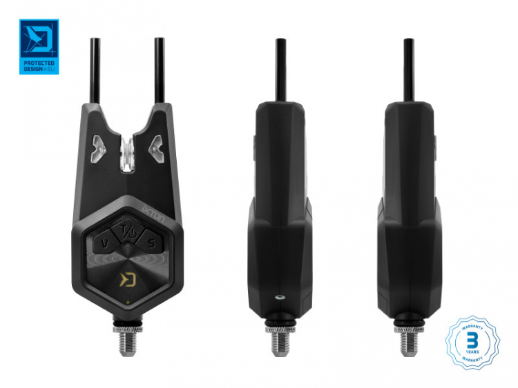 Signalizátor je vybavený tromi tlačidla. Pomocou tlačidla uprostred je možné ho zapnúť, resp. vypnúť. Pri dlhšom podržaní stredového tlačidla sa zopne podsvietenie záberového kolieska, čo vytvára v tme veľmi pekný vizuálny efekt a zároveň slúži ako nočná dióda, ktorá v noci umožňuje jednoduchú detekciu umiestnenia prútov. Krátkym stláčaním stredového tlačidla je navyše možné zvoliť jeden z ôsmych tónov. Na spätný záber, resp. „padák“ budete upozornený odlišným tónom signalizácie. Pomocou tlačidla umiestneného na signalizátore vľavo (V) navolíte požadovanú hlasitosť, vrátane tichého módu. Tlačidlo napravo (S) umožňuje vybrať jednu z 5. úrovní citlivosti. Všetky zvolené nastavenia signalizátora sa uchovávajú v pamäti.