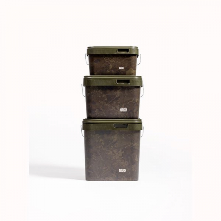 Pevné, hrubostenné hranaté vedierka pre úsporné skladovanie návnad. Ideálne pre spod zmesy, pelety alebo boilies. Odolné držadlo pre pohodlné nosenie.